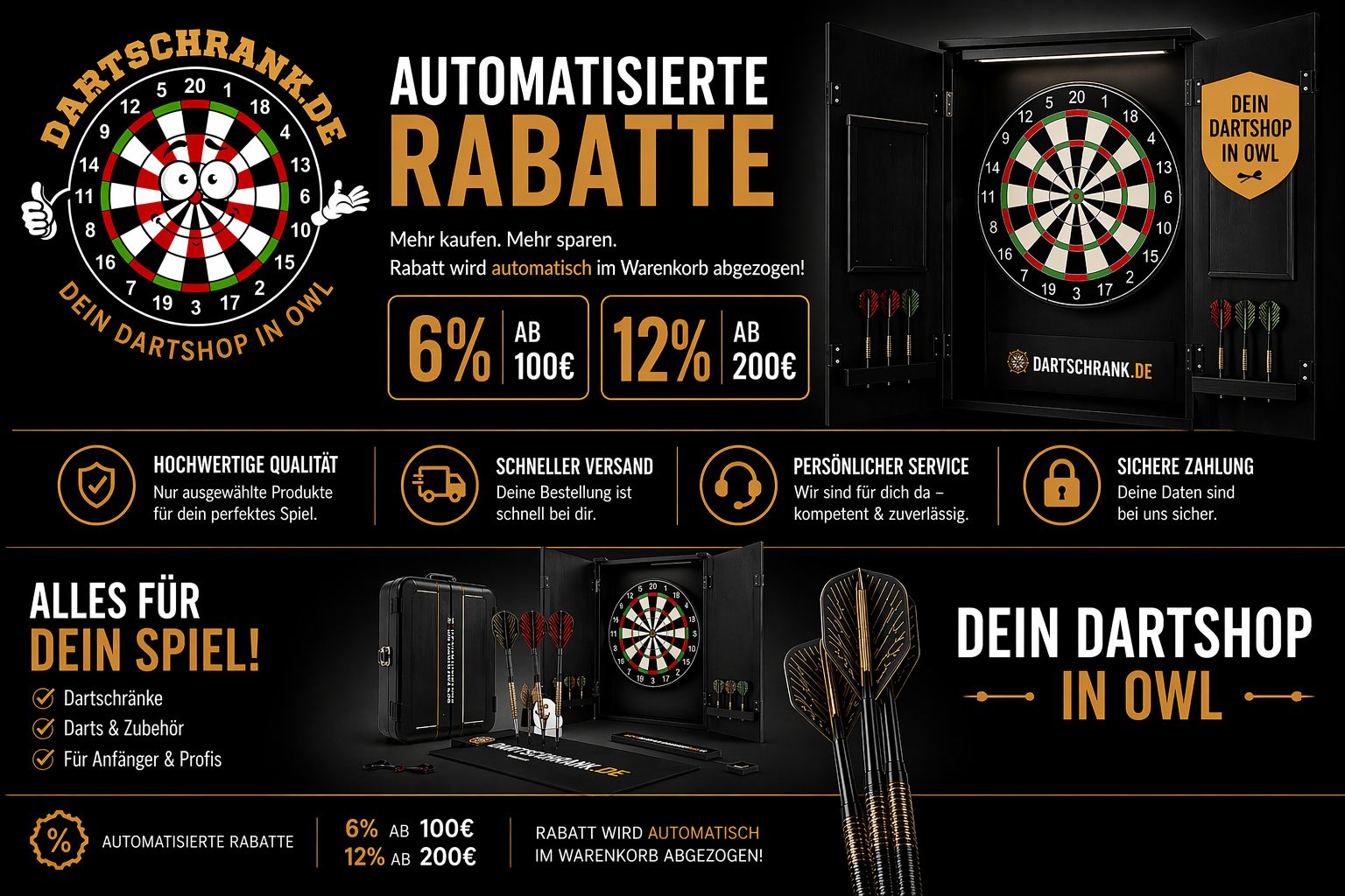 Seit 2020 sind wir für Euch da, egal ob Anfänger, Fortgeschrittener oder Profi und versorgen Euch mit allem, was das Darterherz begeht. Dabei haben wir es uns zur Aufgabe gemacht, vorallem eines in dem Mittelpunkt zu stellen, nämlich Euch und Eure Bedürfnisse.